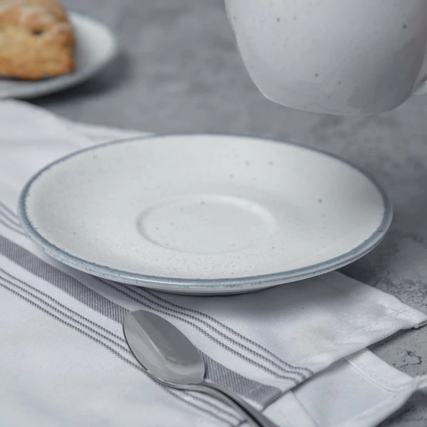 Tuxton MEE-056 Meridian 5 3/4″ Eggshell Embossed Swirl Rim China Saucer – 36/Case