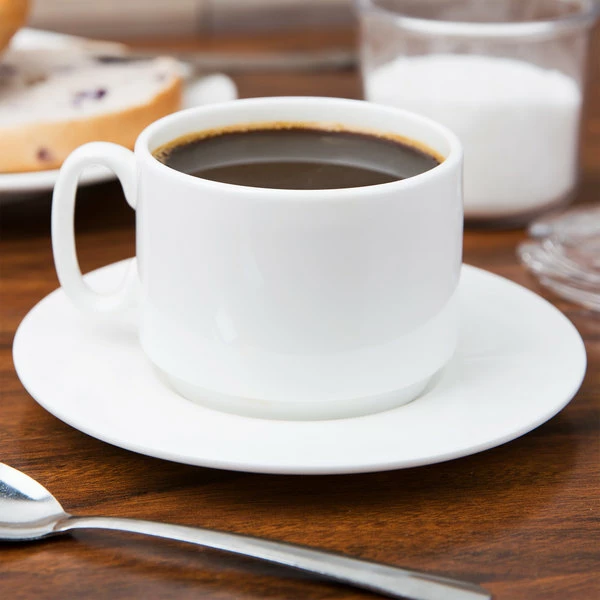 10 Strawberry Street Catering Pack CATCOM-RD-9 Bright White 8 Oz. Porcelain Cup And Saucer – 12/Case