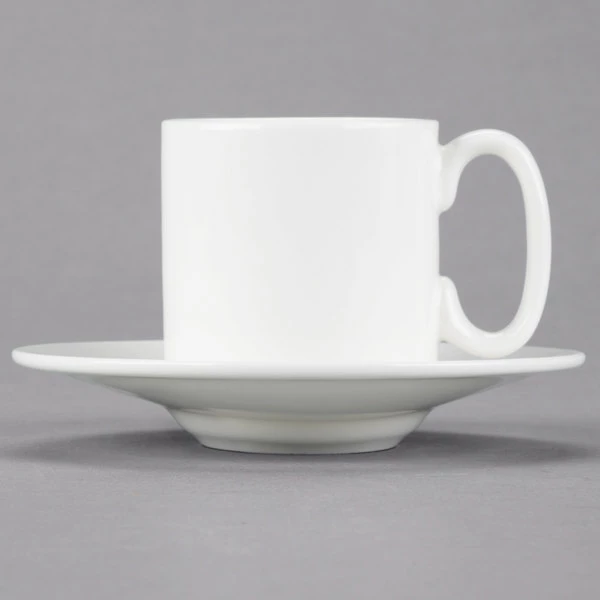 10 Strawberry Street WTR-CUP Whittier 4 Oz. White Square Porcelain Cup With Saucer – 24/Case