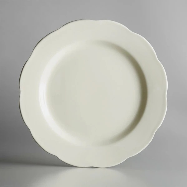 Acopa 10 3/4″ Ivory (American White) Scalloped Edge Stoneware Plate With Black Band – 12/Case