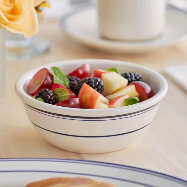 Be the first to review “Acopa 10 Oz. Ivory (American White) Stoneware Nappie Bowl With Blue Bands – 36/Case” Cancel reply