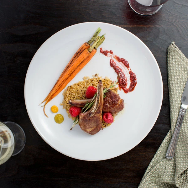 Acopa Swell 12″ Ivory (American White) Embossed Wide Rim Stoneware Plate – 12/Case