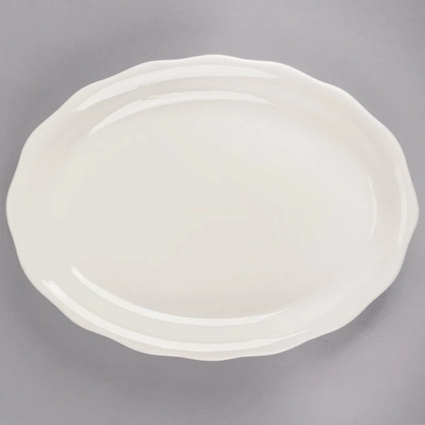 Be the first to review “Acopa 12 5/8″ X 9 1/4″ Ivory (American White) Scalloped Edge Oval Stoneware Platter – 12/Case” Cancel reply