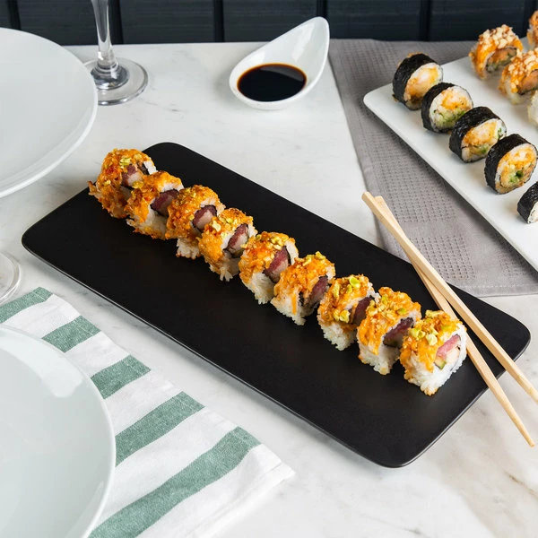 Be the first to review “Acopa 14″ X 6 1/4″ Rectangular Matte Black Stoneware Flat Plate – 6/Case” Cancel reply