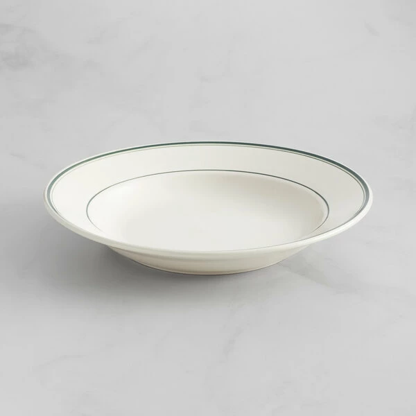 Be the first to review “Acopa 26 Oz. Ivory (American White) Wide Rim Stoneware Pasta Bowl With Green Bands – 12/Case” Cancel reply