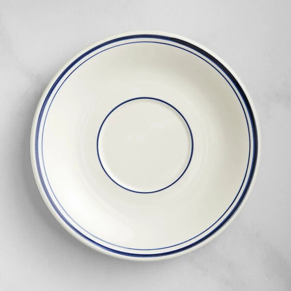Be the first to review “Acopa 6″ Ivory (American White) Stoneware Saucer With Blue Bands – 36/Case” Cancel reply