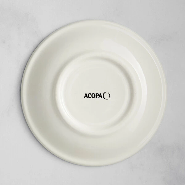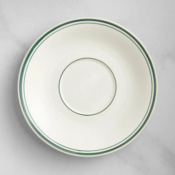 Be the first to review “Acopa 6″ Ivory (American White) Stoneware Saucer With Green Bands – 36/Case” Cancel reply