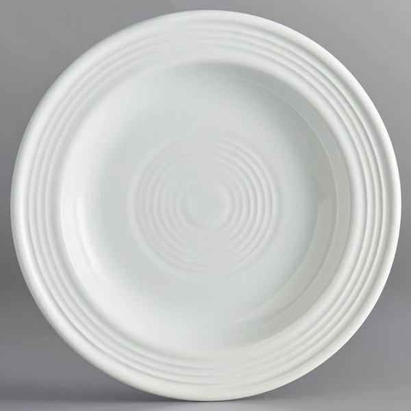 Acopa Swell 12″ Ivory (American White) Embossed Wide Rim Stoneware Plate – 12/Case