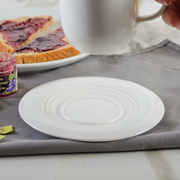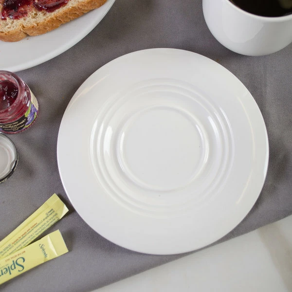 Tuxton MEE-056 Meridian 5 3/4″ Eggshell Embossed Swirl Rim China Saucer – 36/Case