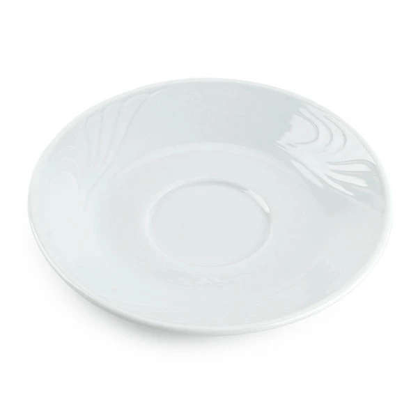 Tuxton MEE-056 Meridian 5 3/4″ Eggshell Embossed Swirl Rim China Saucer – 36/Case