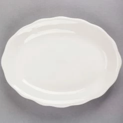 Acopa 9 5/8″ X 7 1/8″ Ivory (American White) Scalloped Edge Oval Stoneware Platter – 24/Case