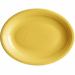 Acopa Capri 13 3/4″ X 10 1/2″ Citrus Yellow Oval Stoneware Coupe Platter – 12/Case