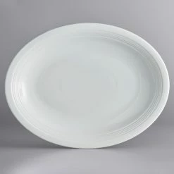 Acopa Capri 13 3/4″ X 10 1/2″ Coconut White Oval Stoneware Coupe Platter – 12/Case