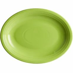 Acopa Capri 13 3/4″ X 10 1/2″ Palm Green Oval Stoneware Coupe Platter – 12/Case