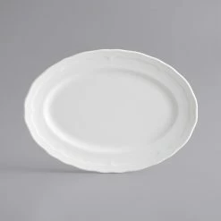 Acopa Condesa 9 3/4″ X 7″ Pearl White Scalloped Wide Rim Porcelain Platter – 24/Case