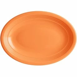 Acopa Capri 9 3/4″ X 7″ Valencia Orange Oval Stoneware Coupe Platter – 12/Case