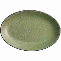 Acopa Embers 9 1/2″ X 6 1/2″ Moss Green Matte Coupe Stoneware Platter – 12/Case