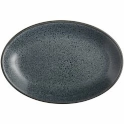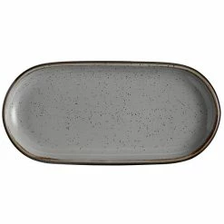 Acopa Embers 9 1/2″ X 6 1/2″ Grey Matte Coupe Stoneware Platter – 12/Case