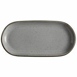 Acopa Keystone 14″ X 6 3/4″ Granite Gray Stoneware Oblong Coupe Platter – 6/Case