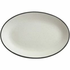 Acopa Embers 9 1/2″ X 6 1/2″ Cream White Matte Coupe Stoneware Platter – 12/Case