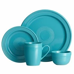 Acopa Capri Caribbean Turquoise Stoneware Dinnerware Set With Service For 12
