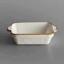 Sample – Acopa Keystone 15 Oz. Vanilla Bean Stoneware Rectangular Baker / Casserole Dish