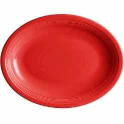 Sample – Acopa Capri 13 3/4″ X 10 1/2″ Passion Fruit Red Oval Stoneware Coupe Platter