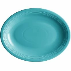 Sample – Acopa Capri 13 3/4″ X 10 1/2″ Caribbean Turquoise Oval Stoneware Coupe Platter