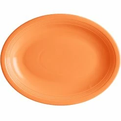 Sample – Acopa Capri 13 3/4″ X 10 1/2″ Mango Orange Oval Stoneware Coupe Platter