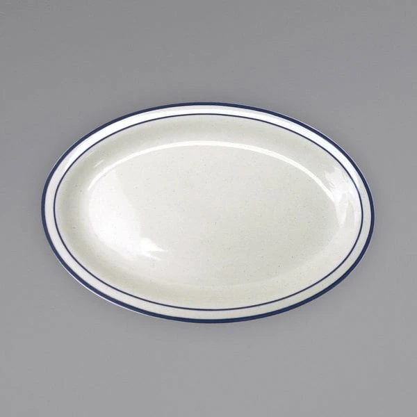 Be the first to review “International Tableware DA-14 Danube 13 1/4″ X 10 3/8″ Ivory (American White) Blue Speckled Narrow Rim Stoneware Platter With Blue Bands – 12/Case” Cancel reply