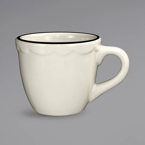 Be the first to review “International Tableware SY-35 Sydney 3 Oz. Ivory (American White) Scalloped Edge Stoneware Espresso Cup With Black Rim – 36/Case” Cancel reply