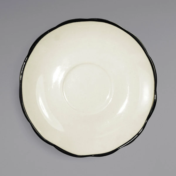 Be the first to review “International Tableware SY-36 Sydney 4 7/8″ Ivory (American White) Scalloped Edge Stoneware Saucer With Black Rim – 36/Case” Cancel reply
