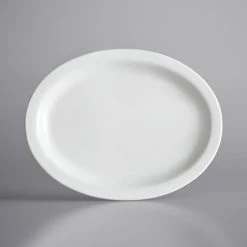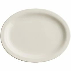 Acopa 11″ X 9″ Ivory (American White) Narrow Rim Oval Stoneware Platter – 12/Case