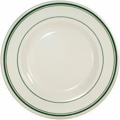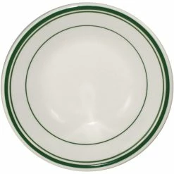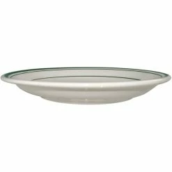 International Tableware Verona 6″ Ivory (American White) Stoneware Saucer With Green Bands – 36/Case