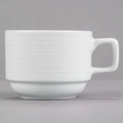 Tuxton FPF-0803 Pacifica 8 Oz. Bright White Embossed Stackable China Cup – 36/Case