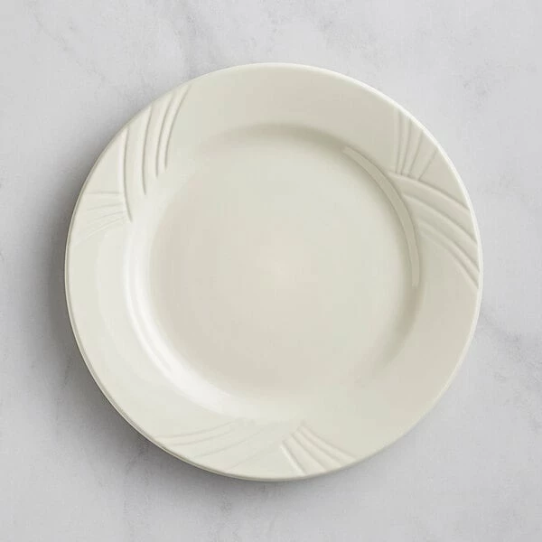 Be the first to review “Sample – Acopa Swell 10 1/2″ Ivory (American White) Embossed Wide Rim Stoneware Plate” Cancel reply