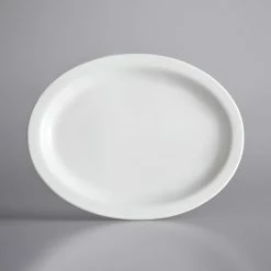 Acopa 13″ X 10 1/2″ Bright White Narrow Rim Oval Stoneware Platter – 12/Case