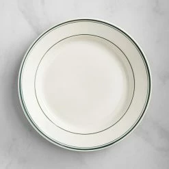 Sample – Acopa 10 1/2″ Ivory (American White) Stoneware Wide Rim Plate With Green Bands