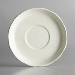 Acopa 6″ Ivory (American White) Scalloped Edge Stoneware Saucer – 36/Case