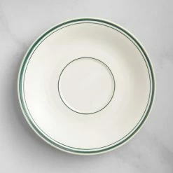 Acopa 6″ Ivory (American White) Stoneware Saucer With Green Bands – 36/Case