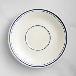 Acopa 6″ Ivory (American White) Stoneware Saucer With Blue Bands – 36/Case