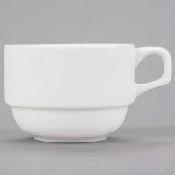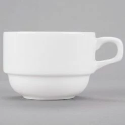 Syracuse China 911194016 Reflections 8 Oz. Aluma White Porcelain Stackable China Cup – 36/Case