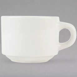 Tuxton TRE-023 Reno / Nevada 7 Oz. Eggshell Stackable China Cup – 36/Case