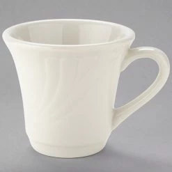 Tuxton YEF-070 Monterey 6 Oz. Eggshell Embossed Rim China Tall Cup – 36/Case