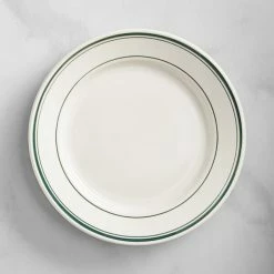 Acopa 9″ Ivory (American White) Stoneware Wide Rim Plate With Green Bands – 24/Case