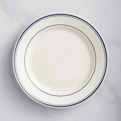 Acopa 9″ Ivory (American White) Stoneware Wide Rim Plate With Blue Bands – 24/Case