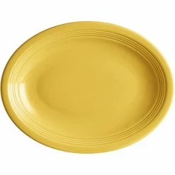 Acopa Capri 11 1/2″ X 8 3/4″ Citrus Yellow Oval Stoneware Coupe Platter – 12/Case
