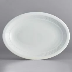 Acopa Capri 11 1/2″ X 8 3/4″ Coconut White Oval Stoneware Coupe Platter – 12/Case