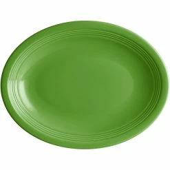 Acopa Capri 11 1/2″ X 8 3/4″ Palm Green Oval Stoneware Coupe Platter – 12/Case