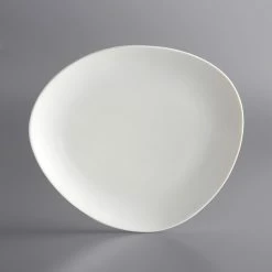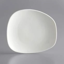 Acopa Nova 12 1/4″ X 10 1/4″ Cream White Asymmetric Stoneware Plate – 12/Case